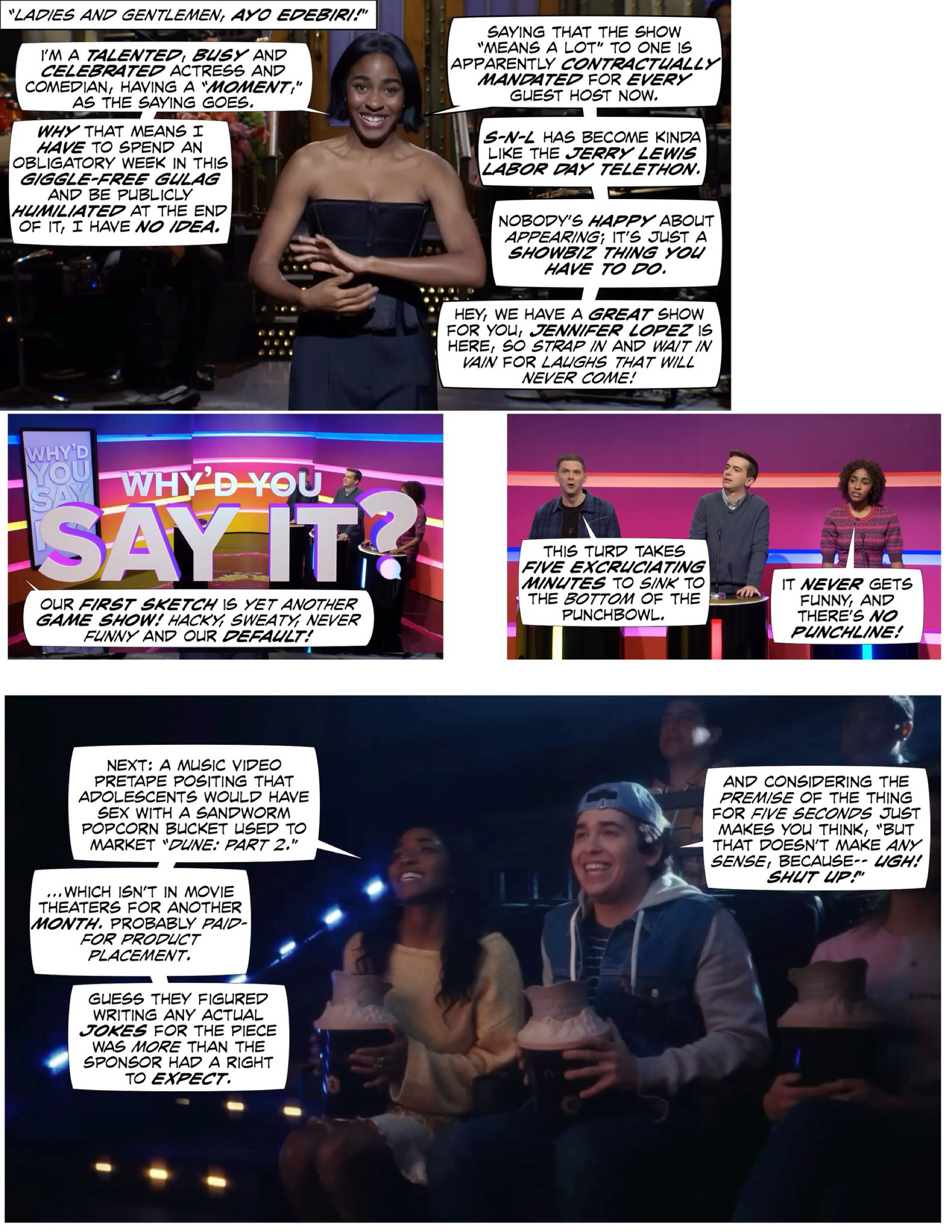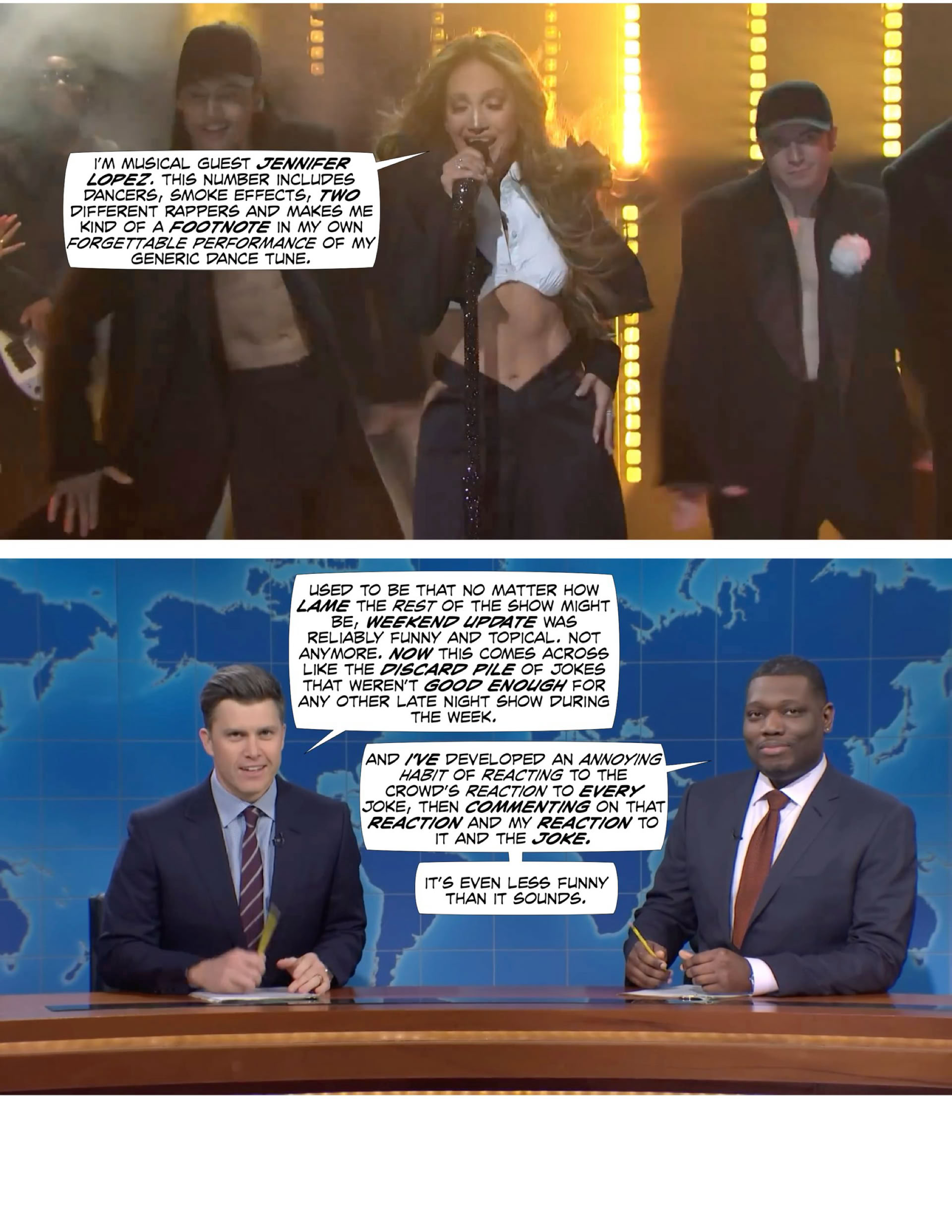 The show was created as a reaction to what it saw as the predictable, format-constricted, formulaic work of things like “The Carol Burnett Show.” It has become the thing it hated and wanted to replace, only without even the professionalism and creativity of the TV comedy it wanted to replace....like, well, “The Carol Burnett Show,” or “The Simpsons Smile-Time Variety Hour.”